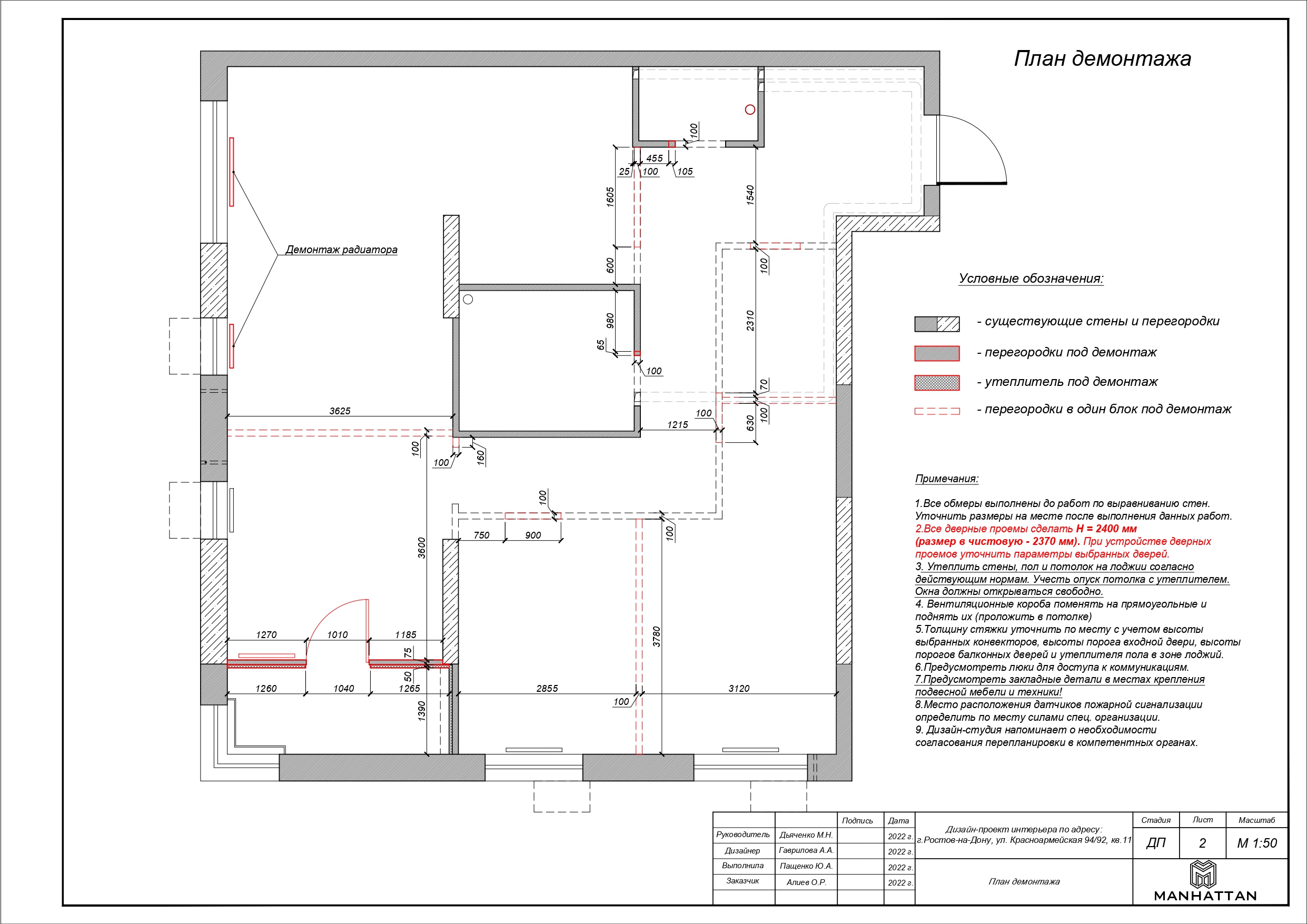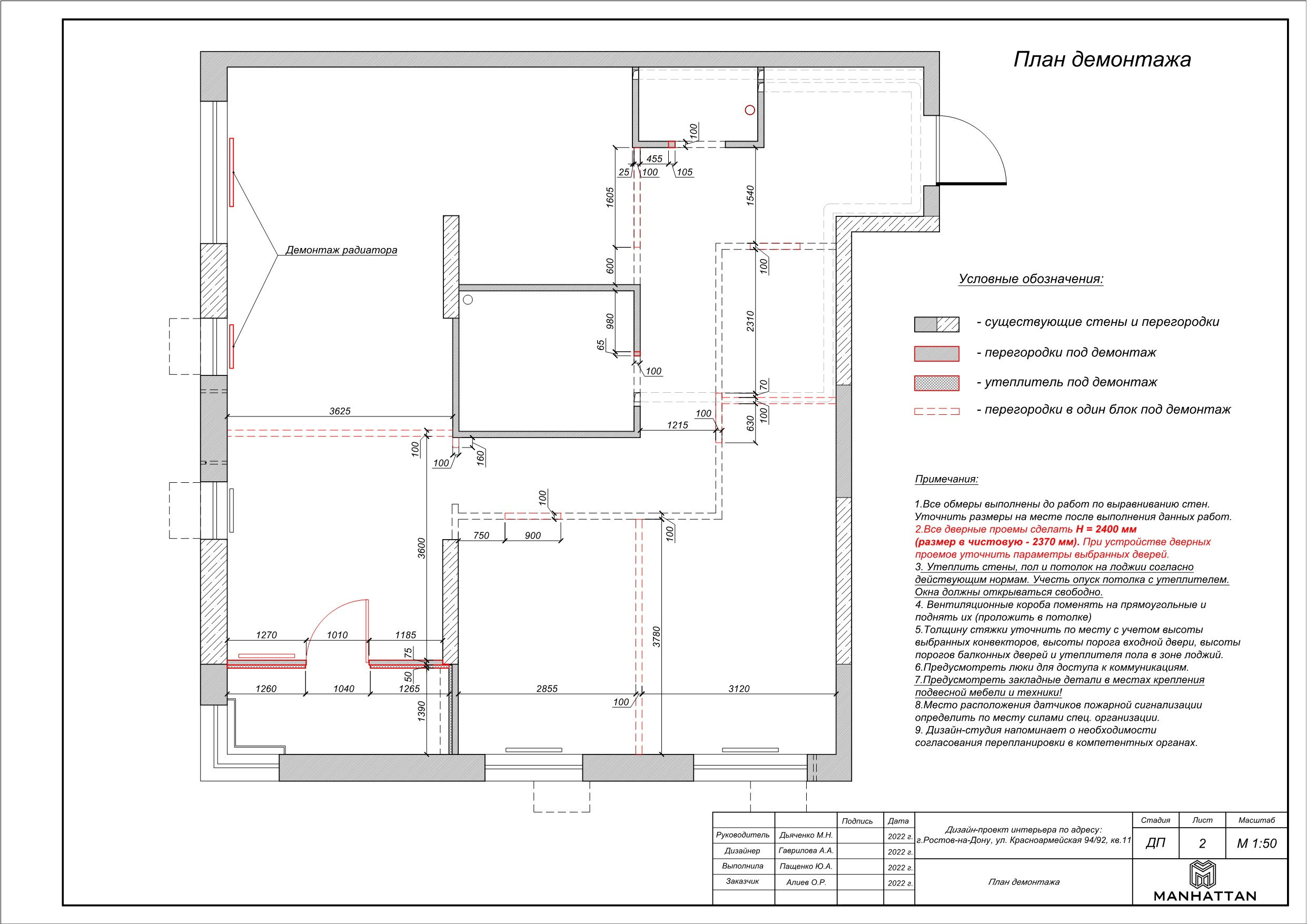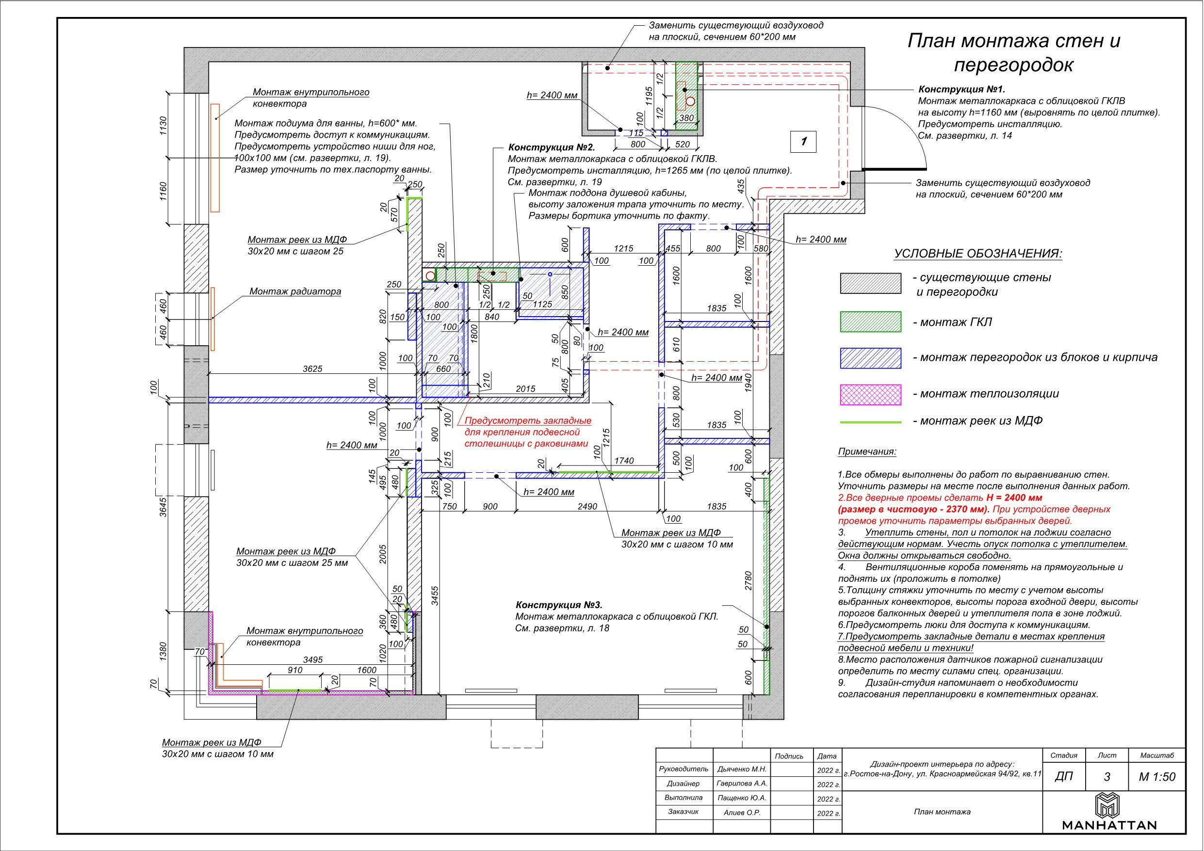 - План монтажа/демонтажа перегородок