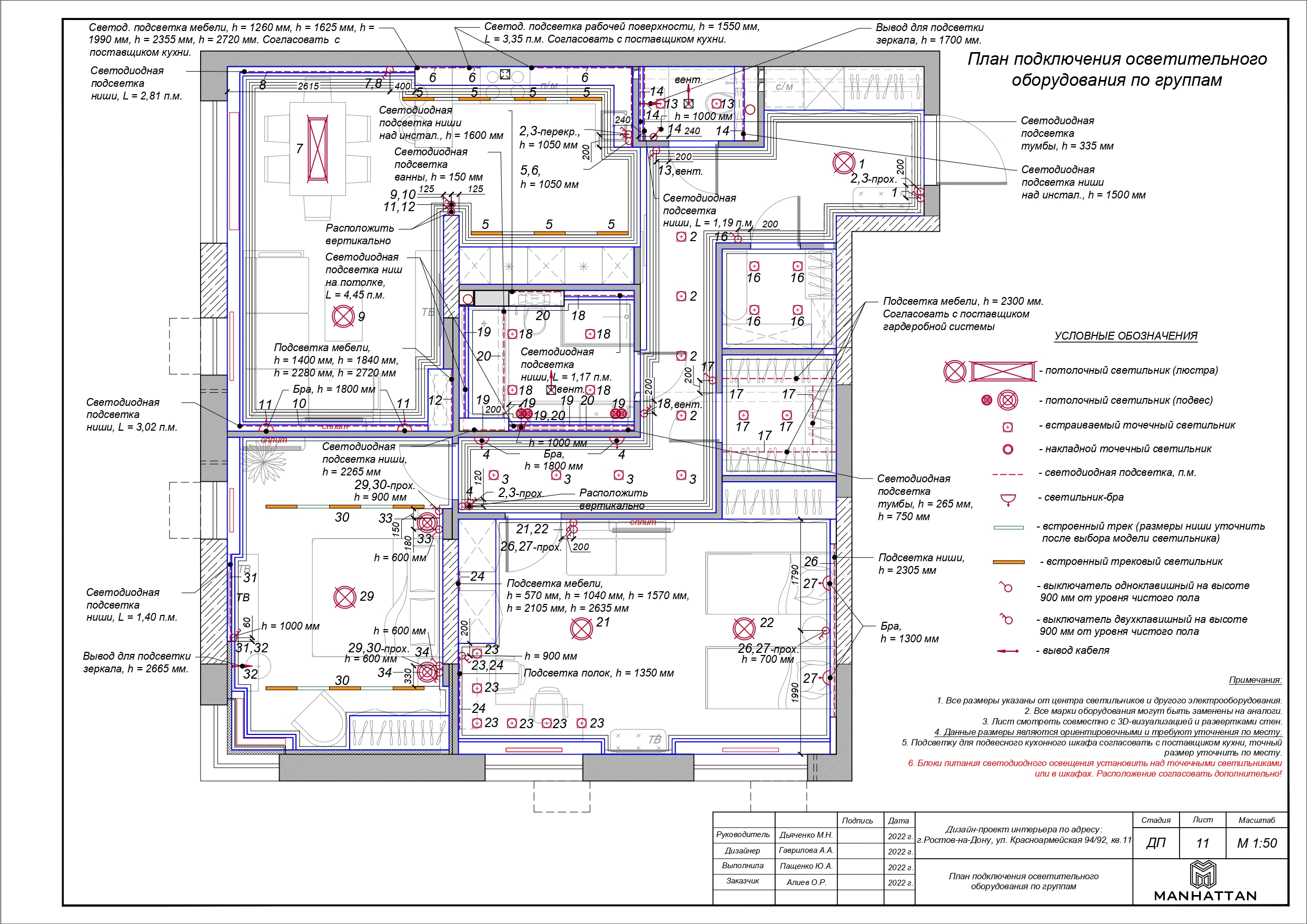 - План подключения осветительного оборудования по группам по стандартным параметрам