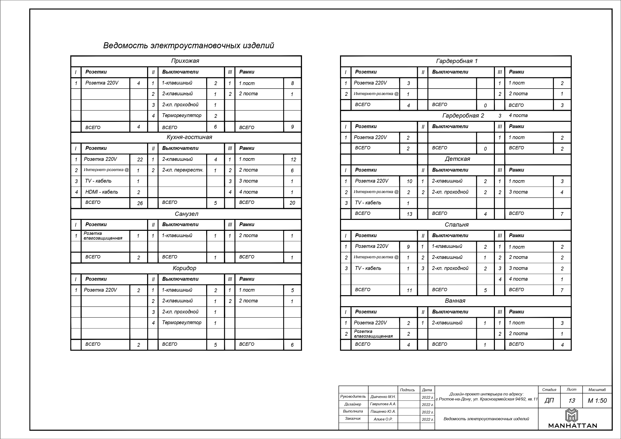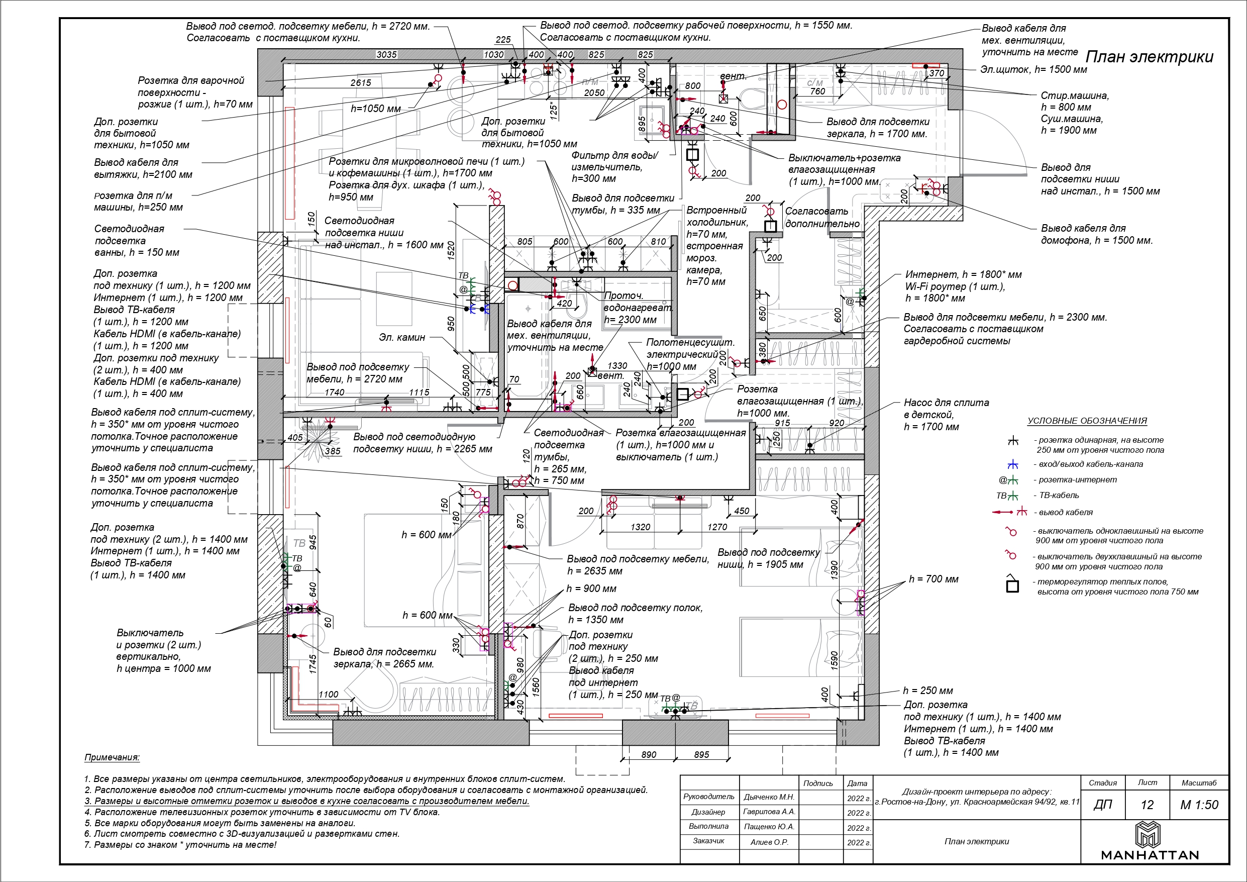 - План электрики по стандартным параметрам