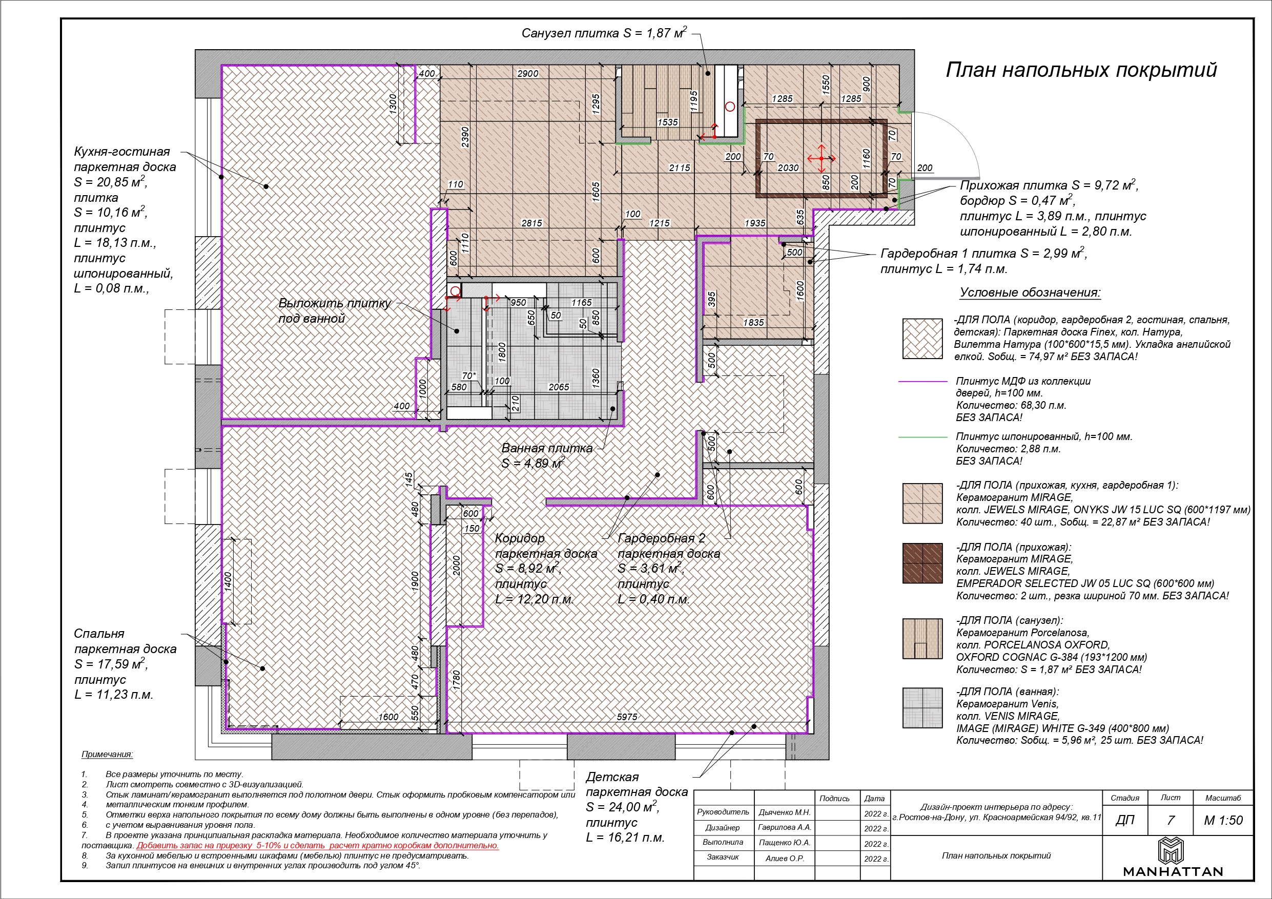 - План напольных покрытий с расчетом материалов